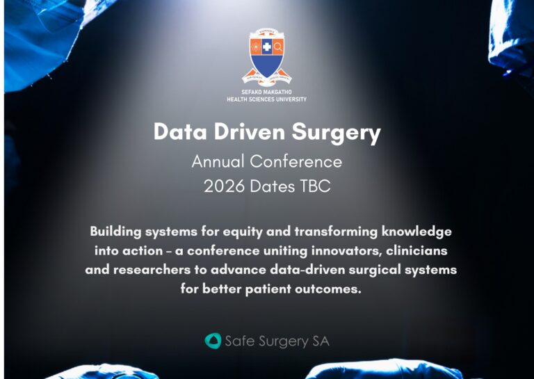 Thank you to everyone who contributed to the success of the Second Annual Data Driven Surgery Conference 2025, co-hosted by Sefako Makgatho Health Sciences University (SMU) and Safe Surgery SA themed: Building systems for equity and transforming knowledge into action – a conference uniting innovators, clinicians and researchers to advance data-driven surgical systems for better patient outcomes.